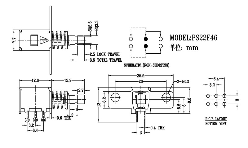 如需了解更多帶螺牙撥動開關PS-22F46信息請關注:m.sytaike.cn