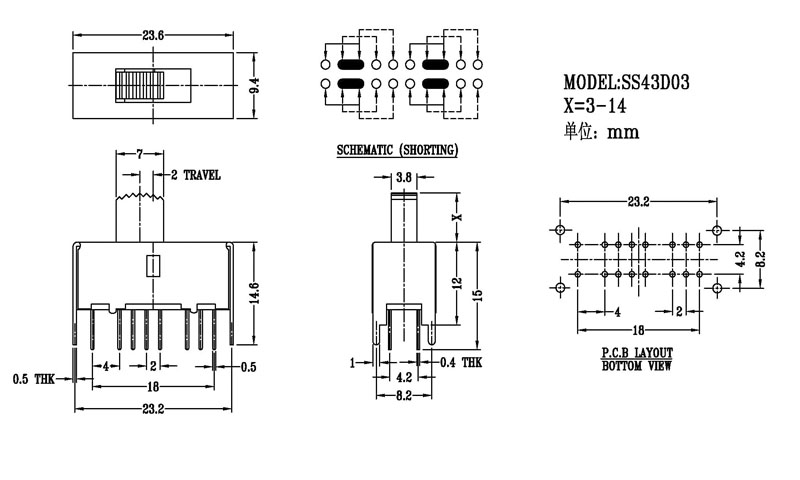 YX-SS-43D13是一款立式撥動開關-三檔滑動開關-帶定位柱切換開關廠家,結構牢固,多檔位,撥動力度均勻檔位感好,廣泛用于玩具電話機收音機家用電器等產品!