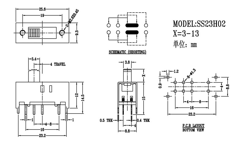 微型撥動開關(guān)技術(shù)參數(shù):