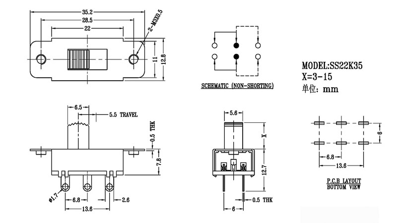 微型撥動開關技術參數: