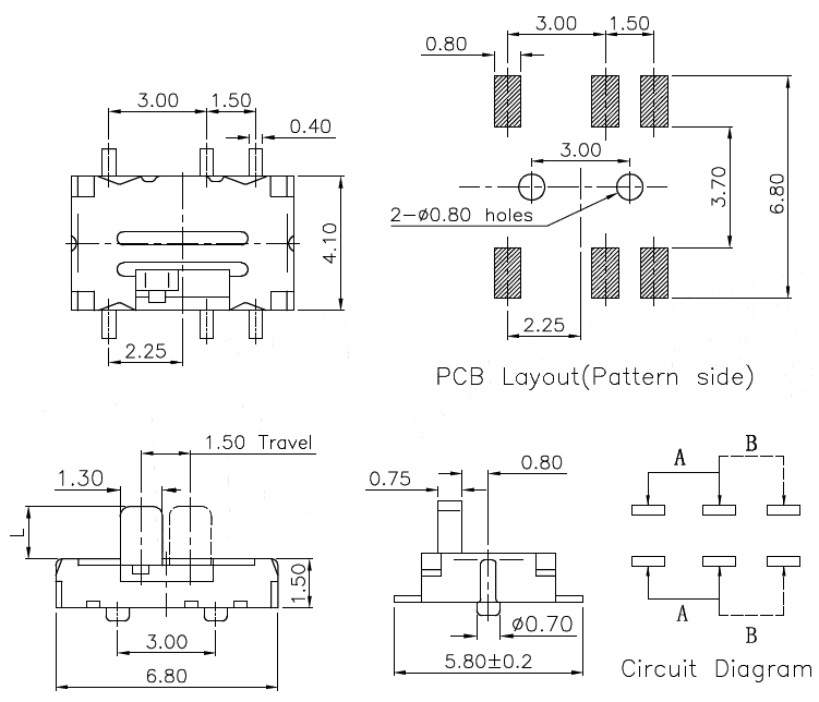 微型撥動(dòng)開關(guān)技術(shù)參數(shù):