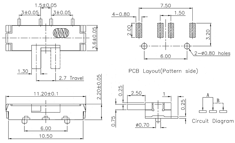 微型撥動(dòng)開關(guān)技術(shù)參數(shù):